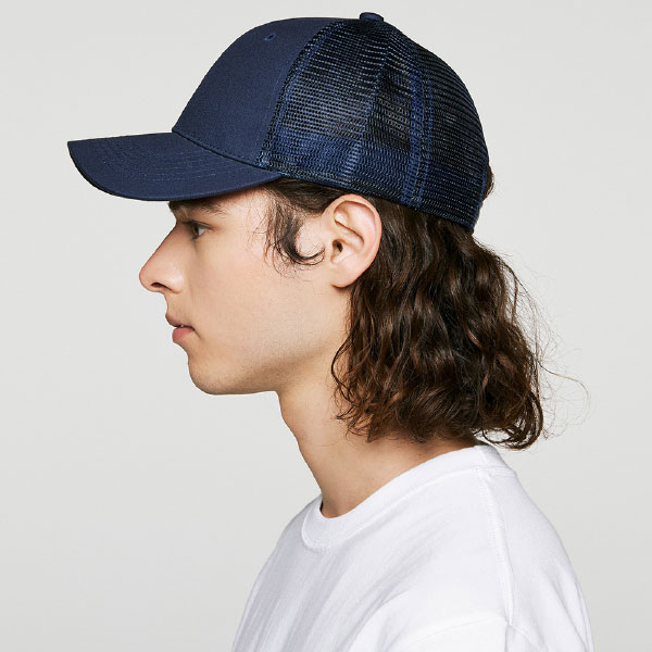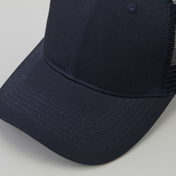 ・やや浅めのクラウンとフェイスラインをきれいに見せるバイザーのカーブが特徴的なメッシュキャップ。